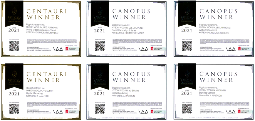 글로벌 광고제인 VEGA DIGITAL AWARDS에서 총 6개 수상했습니다.